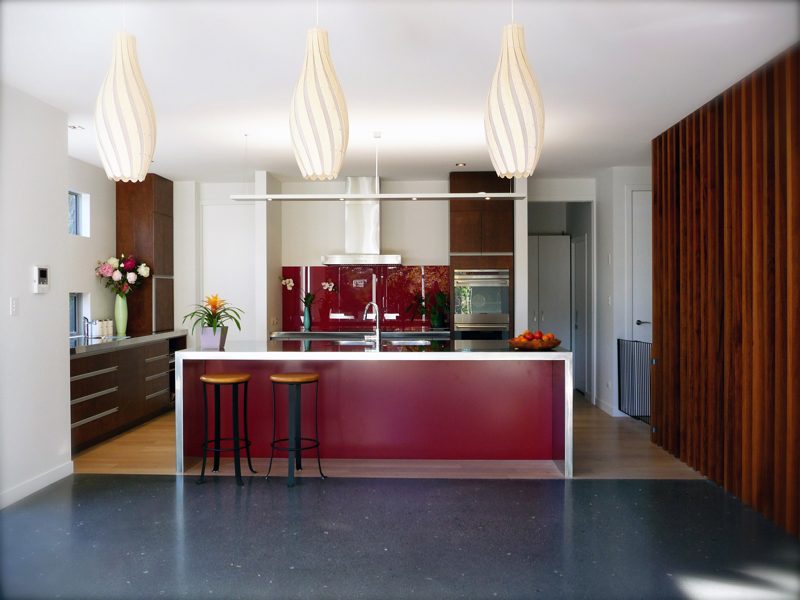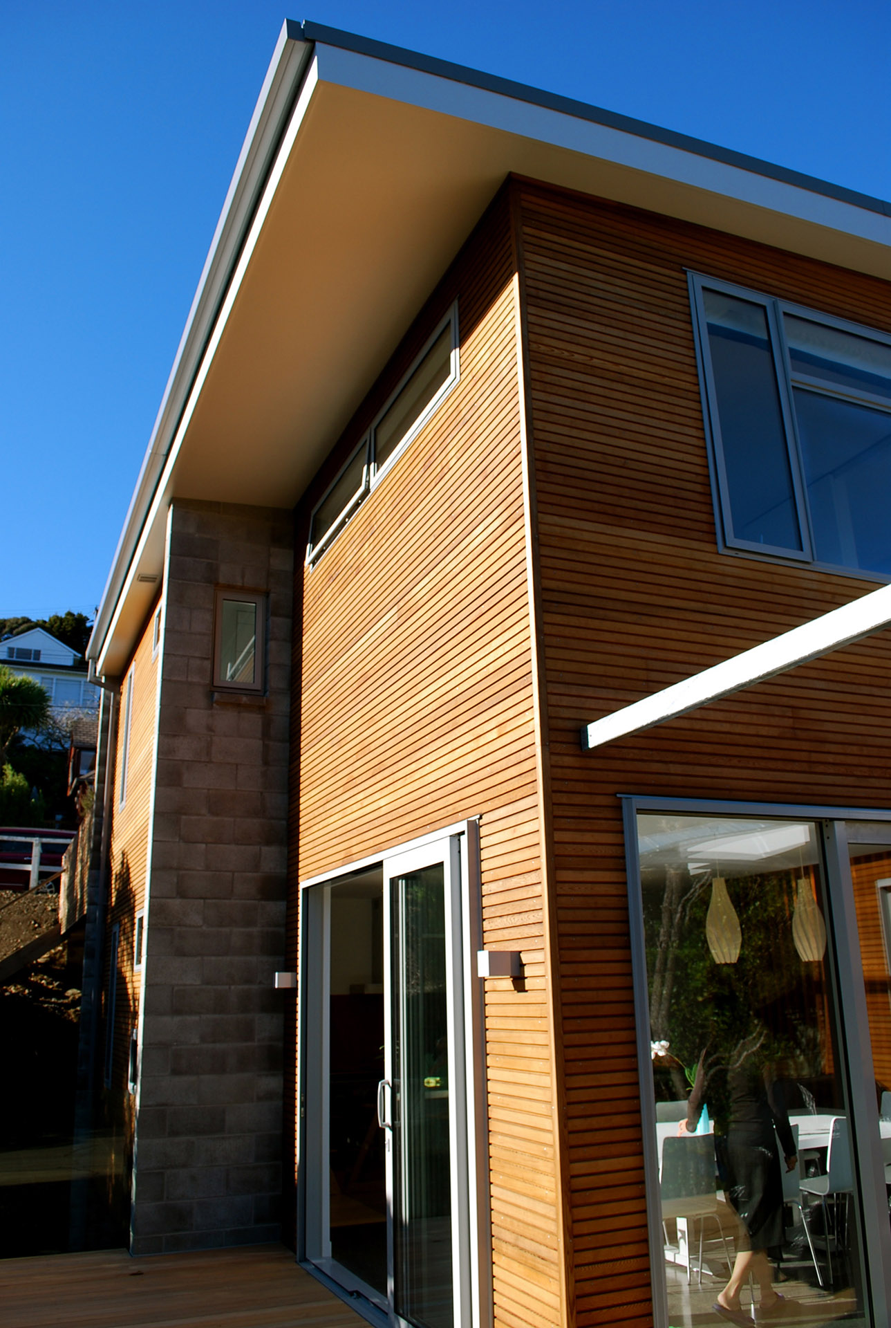 The mass of the concrete provides a medium for the heating of the house, both in storage for passive solar gain, and also for in-slab central heating. It also provides a solid, family home, securely connected to the ground it sits on.