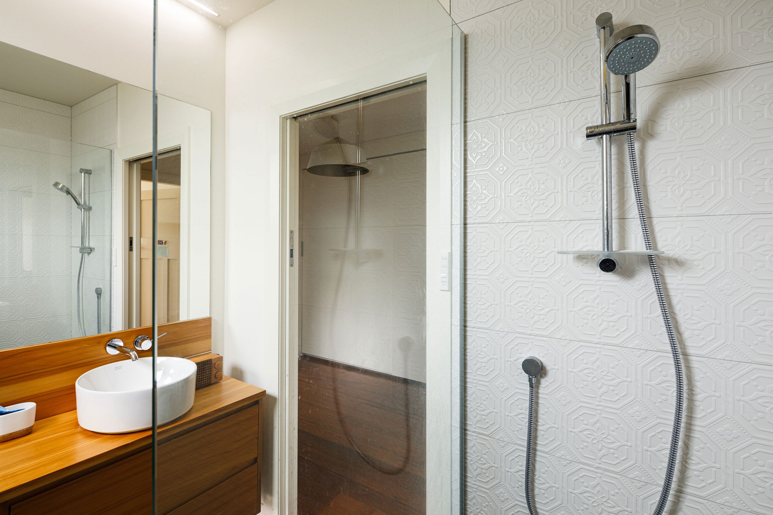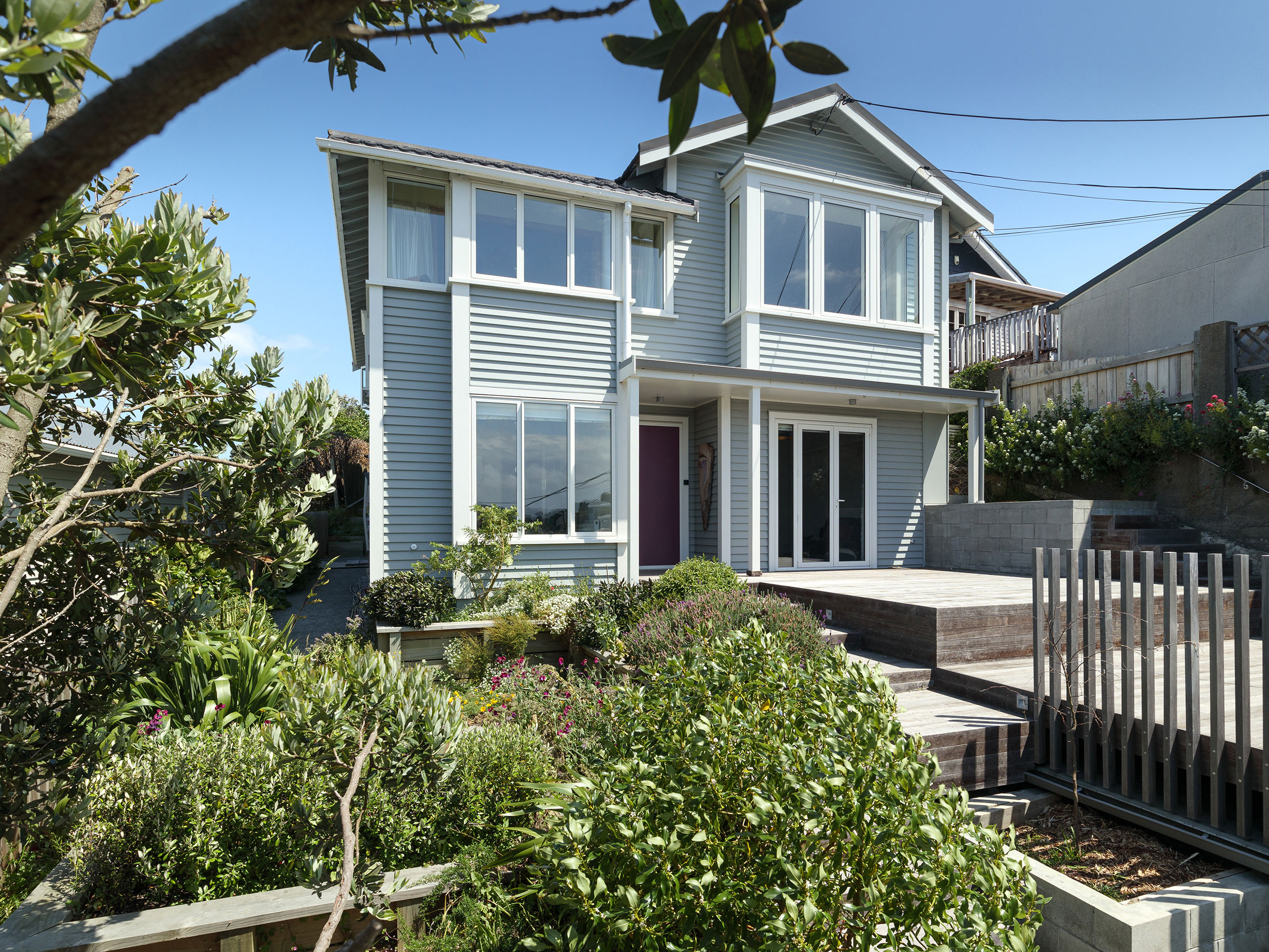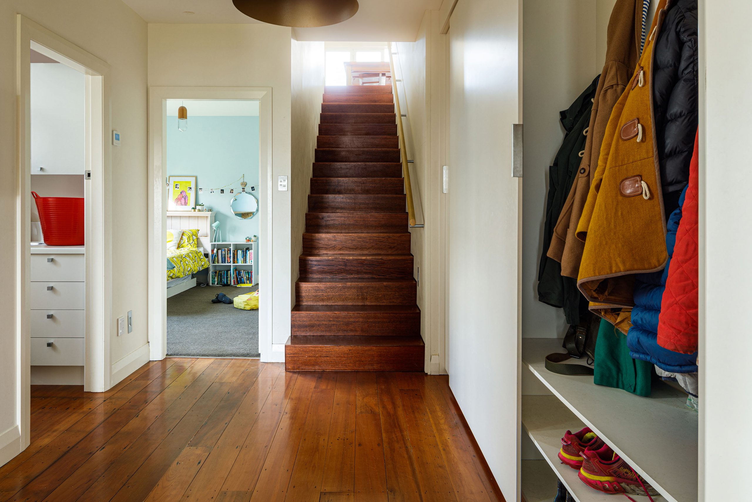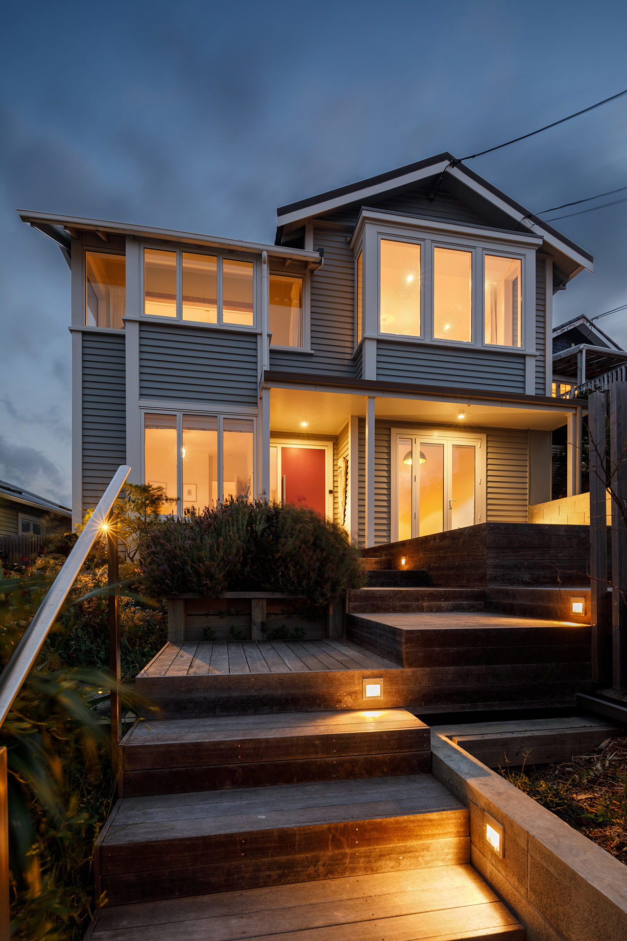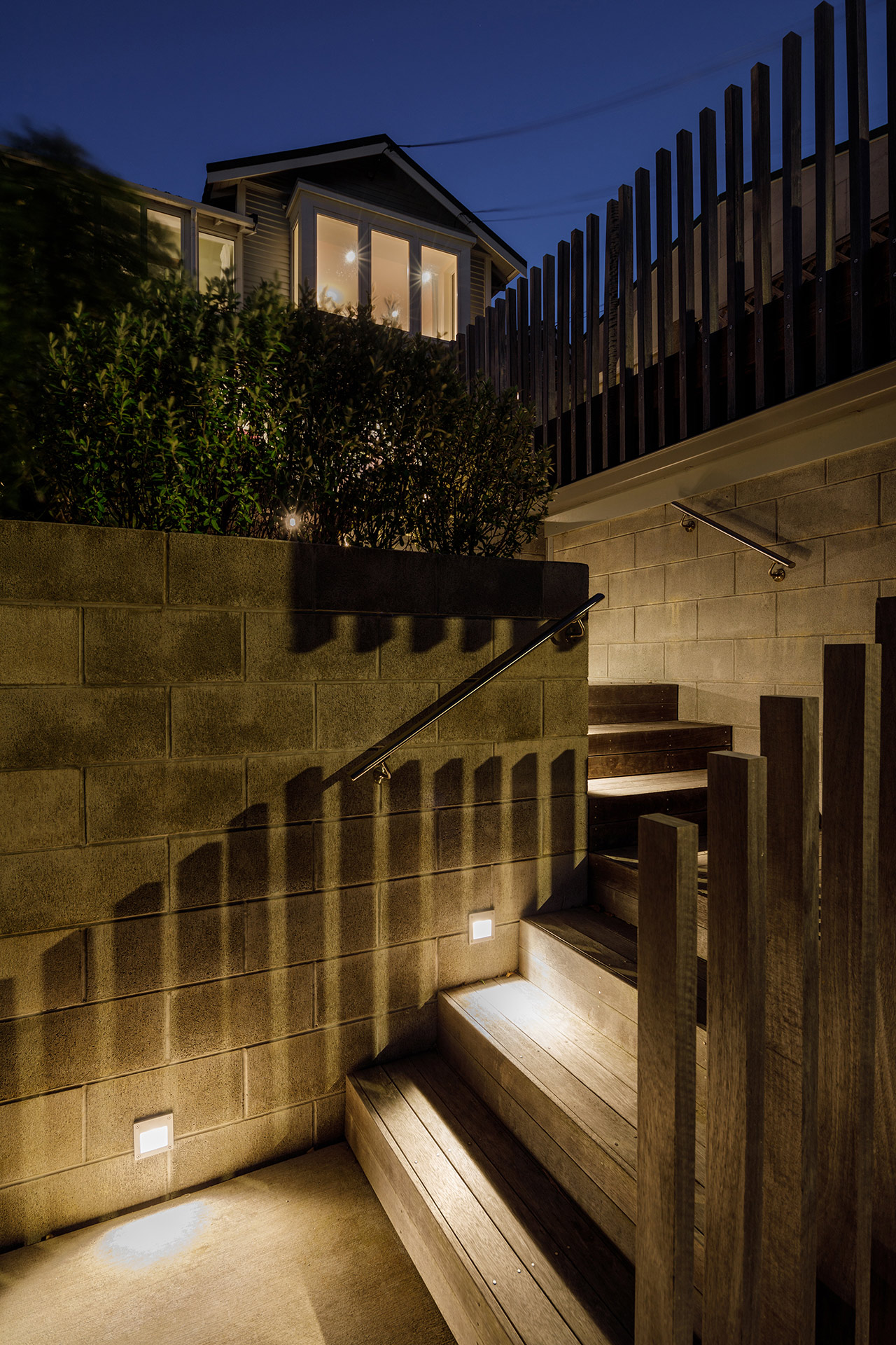 Inside, the existing lower level flat and upper level family home were to be combined to form a robust family home with 5 bedrooms and associated living space. The lower level required new concrete retaining walls, and a complete reconfiguration inside, to provide bedrooms and living space plus a laundry and bathroom. A new entrance and stair formed a spine connecting to the upper level family area and circulation.