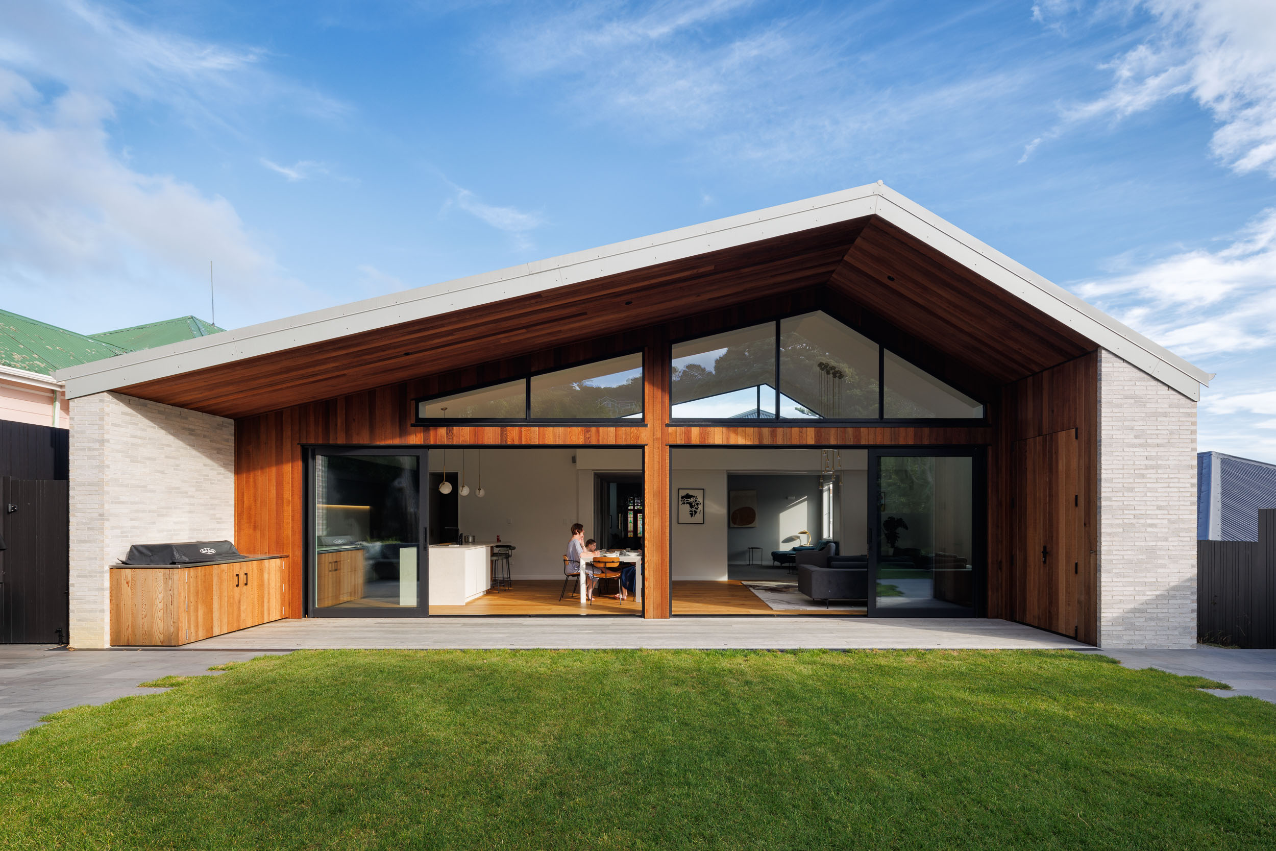 The gable being placed out of line admits light in an extension of the original house geometry – it is a symbiotic relationship of parts.