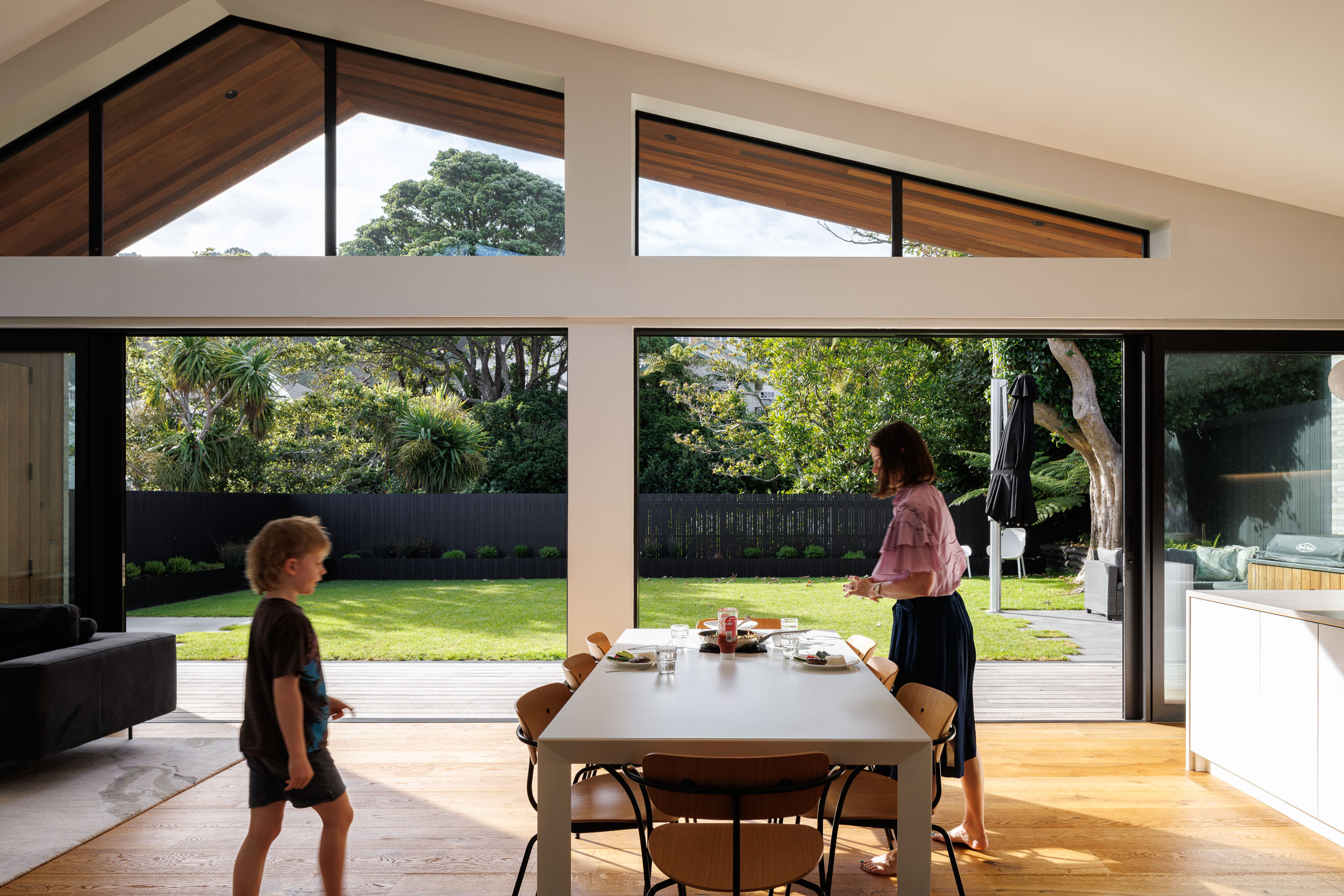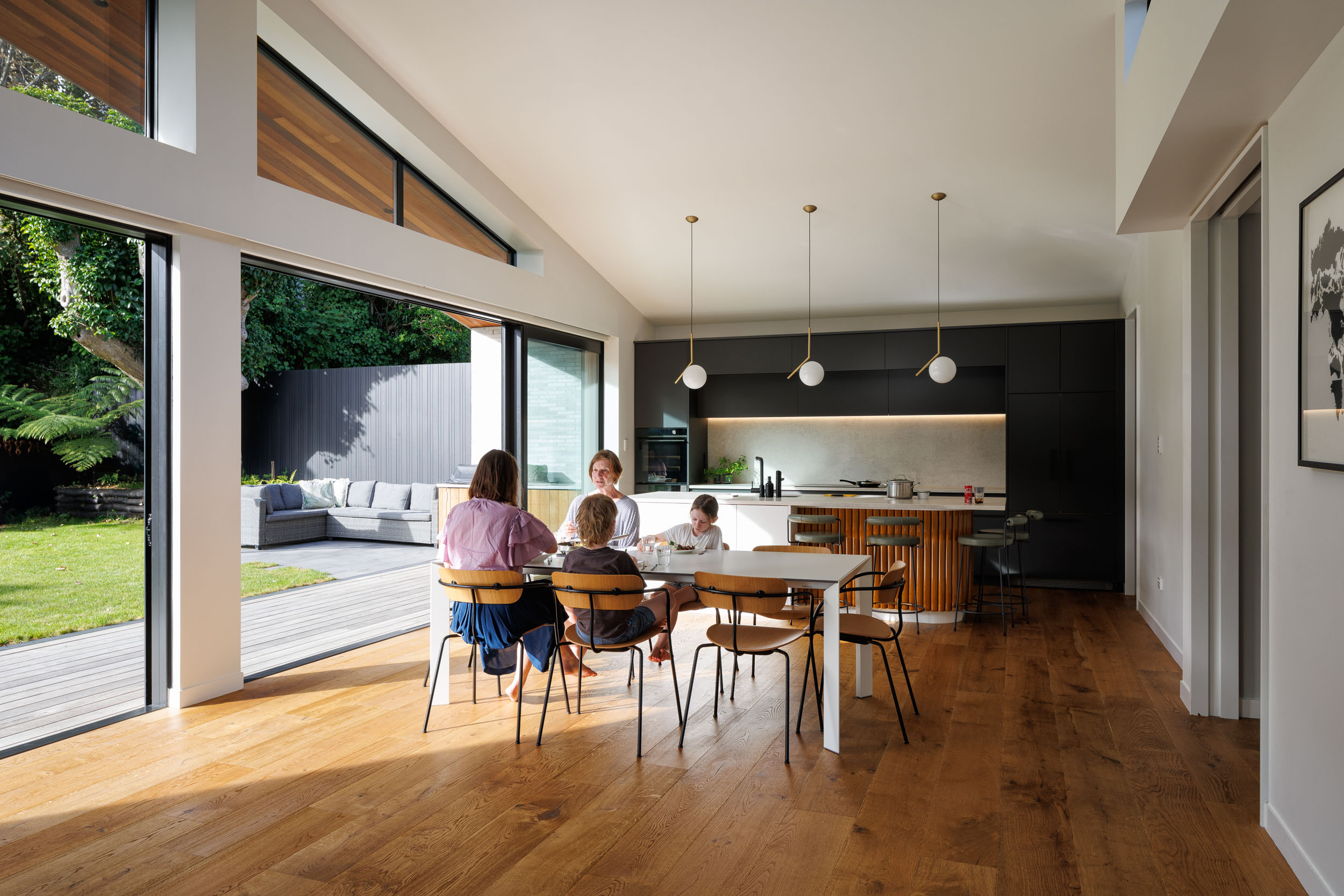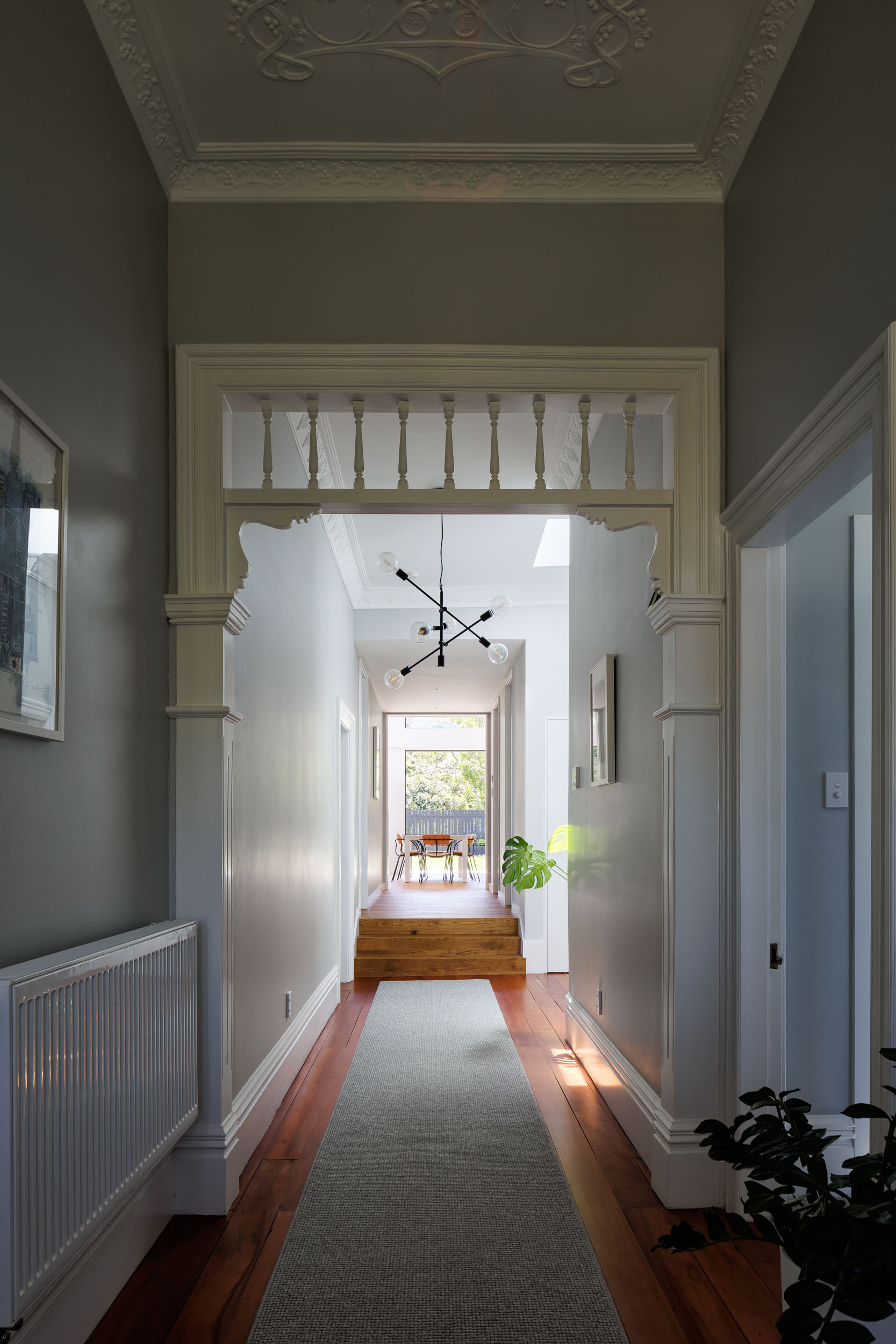 The spaces to the street side were grand – the proportions of a beautiful original villa. However the alterations were smaller scale, with circuitous circulation and dislocated the house from the rear garden. The brief was to provide a volume for living in – family, food and relaxation were to happen in the volume. As the house was for a young family it needed to accommodate them as they grow – the teenage years and beyond, while providing space for offshore family to come and stay for long periods.