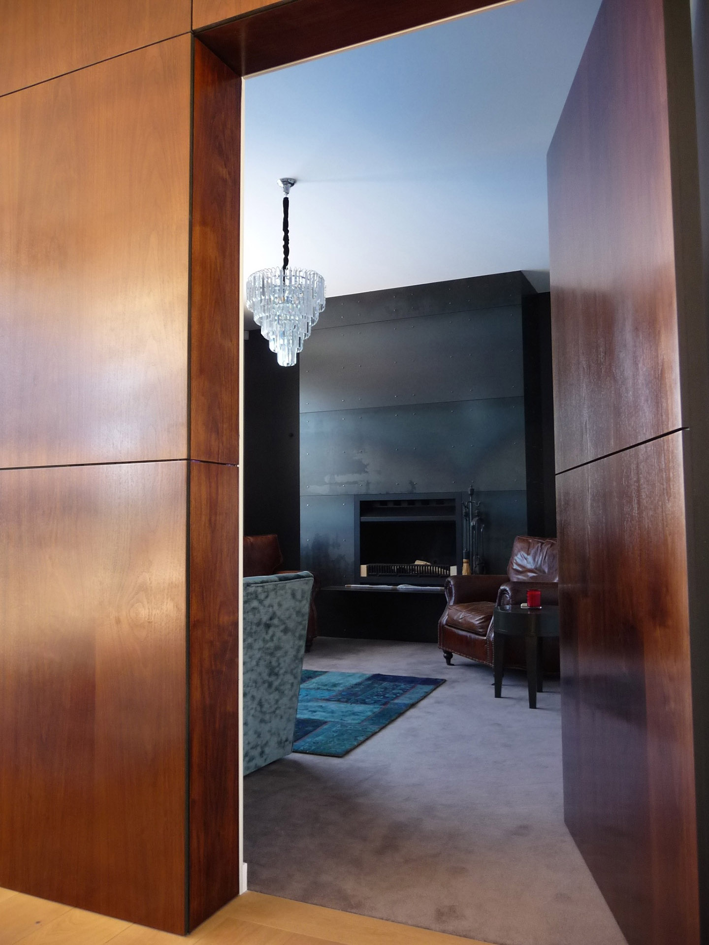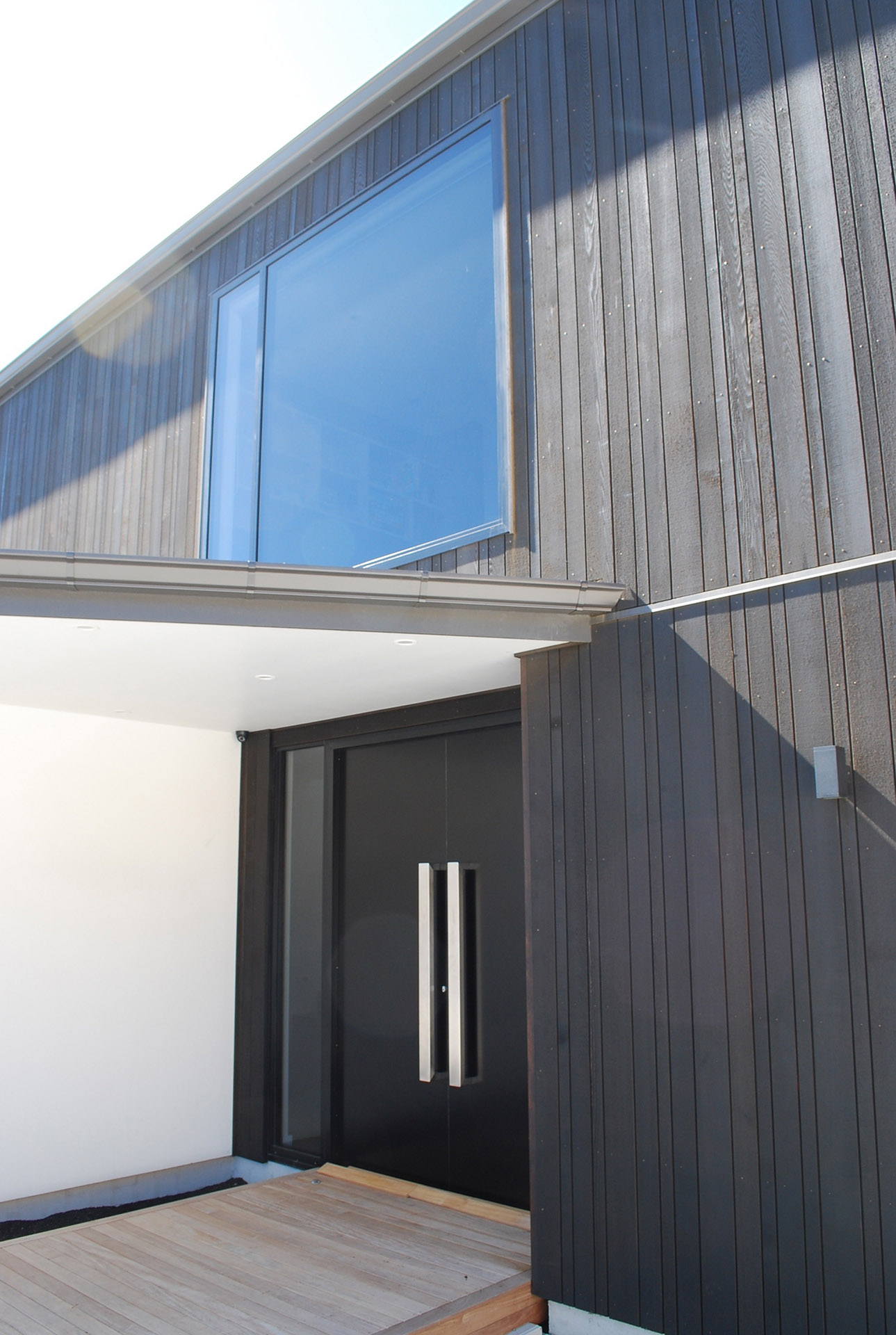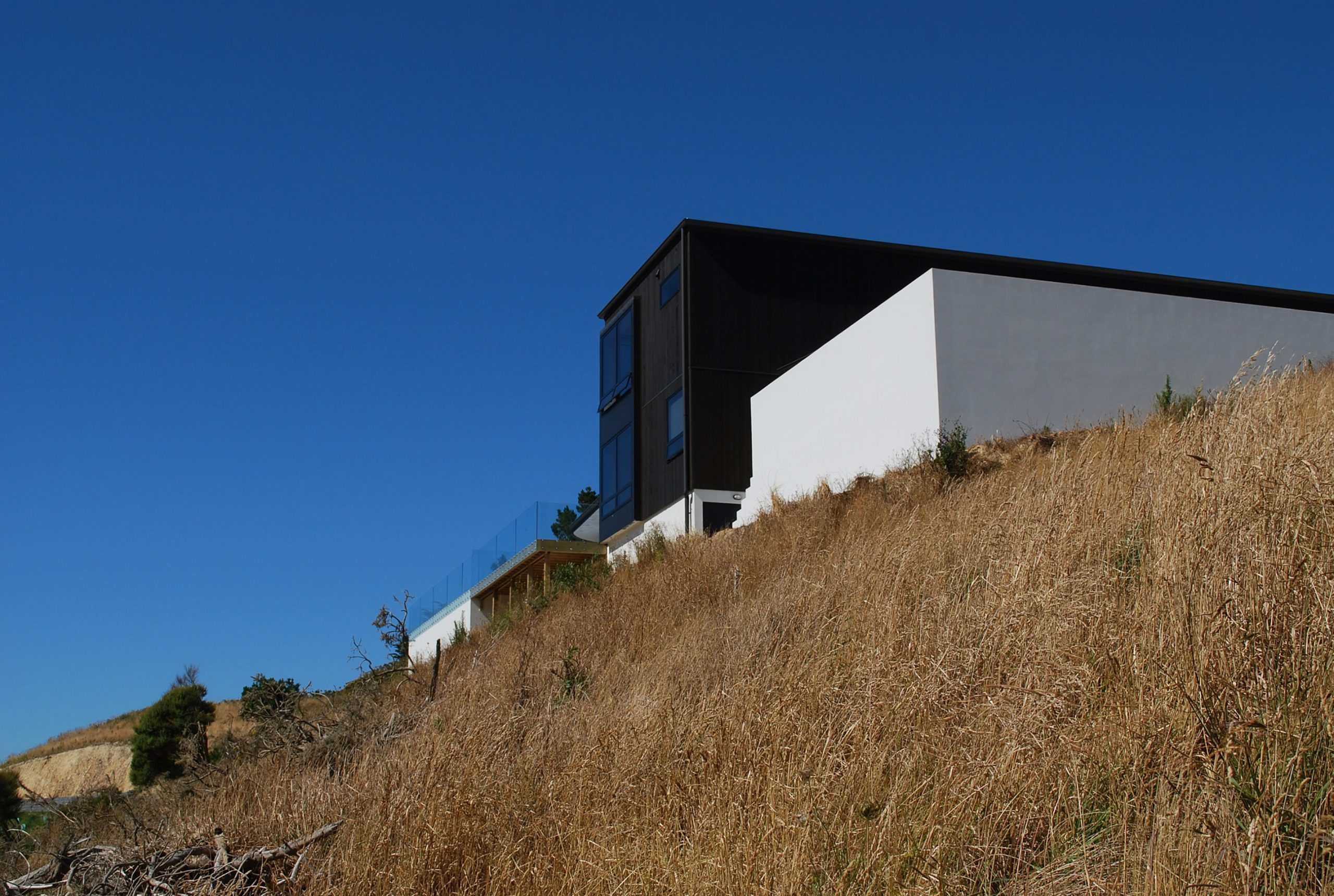 Visibility through the house to the water was a design requirement with a young family using the pool. The transparency of the house provided reassurance and oversight. With the exposed site came the prospect of overheating, as well as the glare of the sun, and therefore deep eaves protect the interior space, and darker rooms are created for evening retreat space and movie watching.