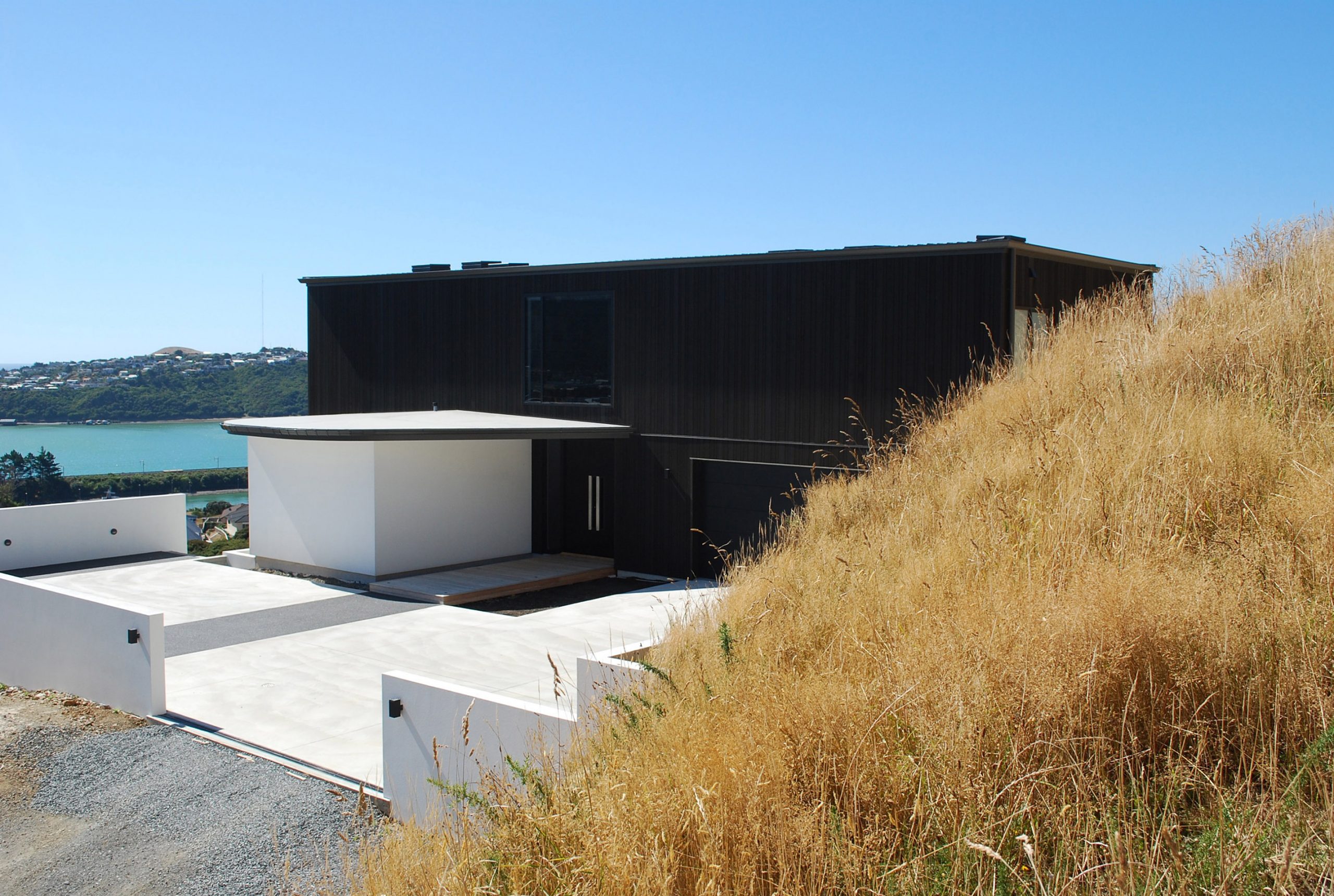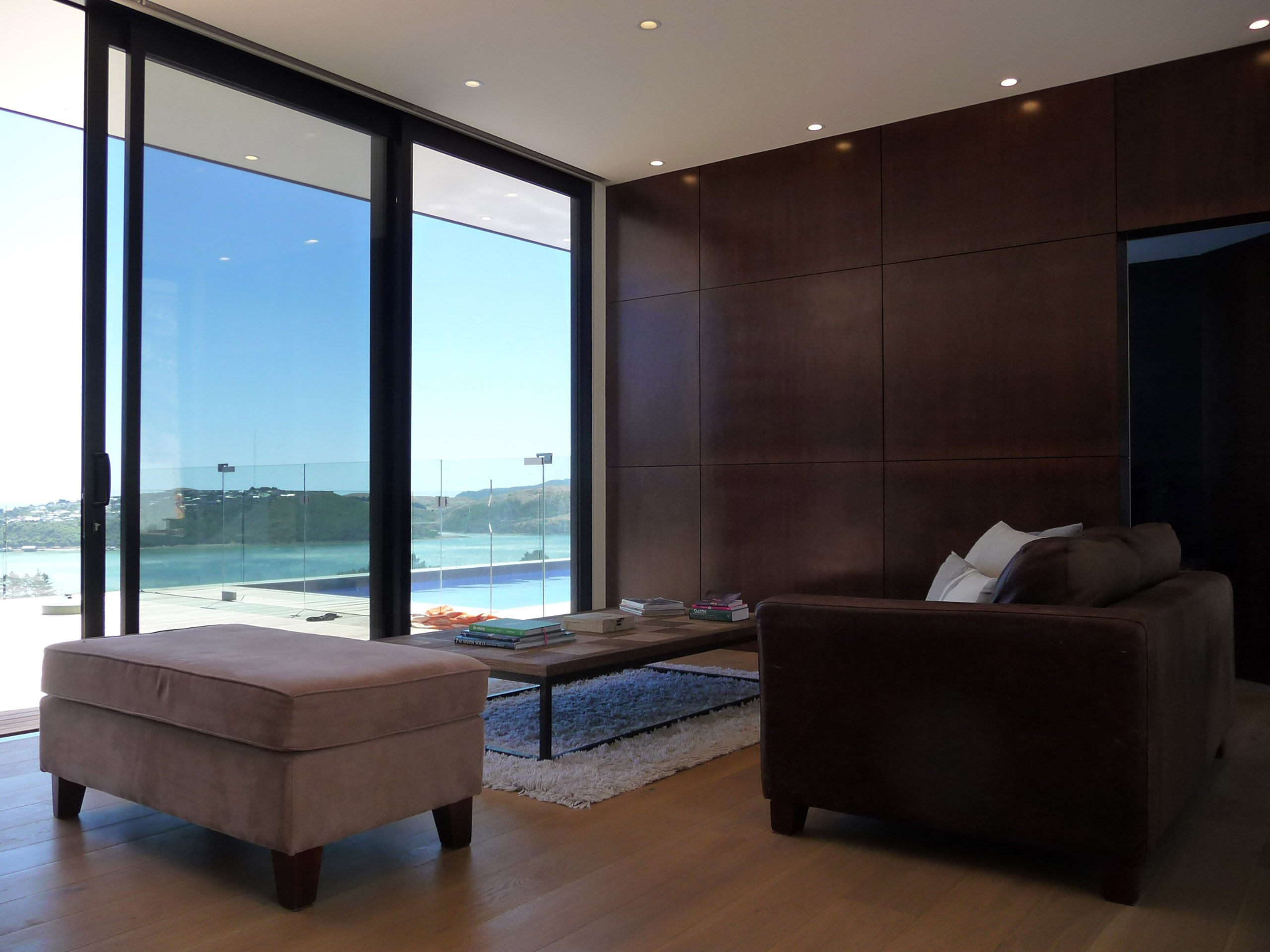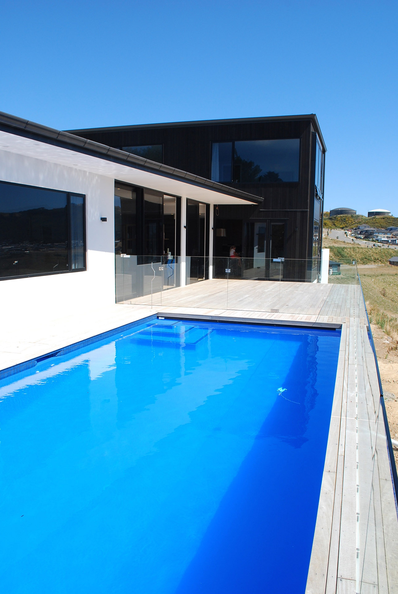 The site for this project was elevated with views across to Porirua Harbour. The brief for the house started with a pool. Around the pool the house would wrap providing a retreat from the busy-ness of city life.