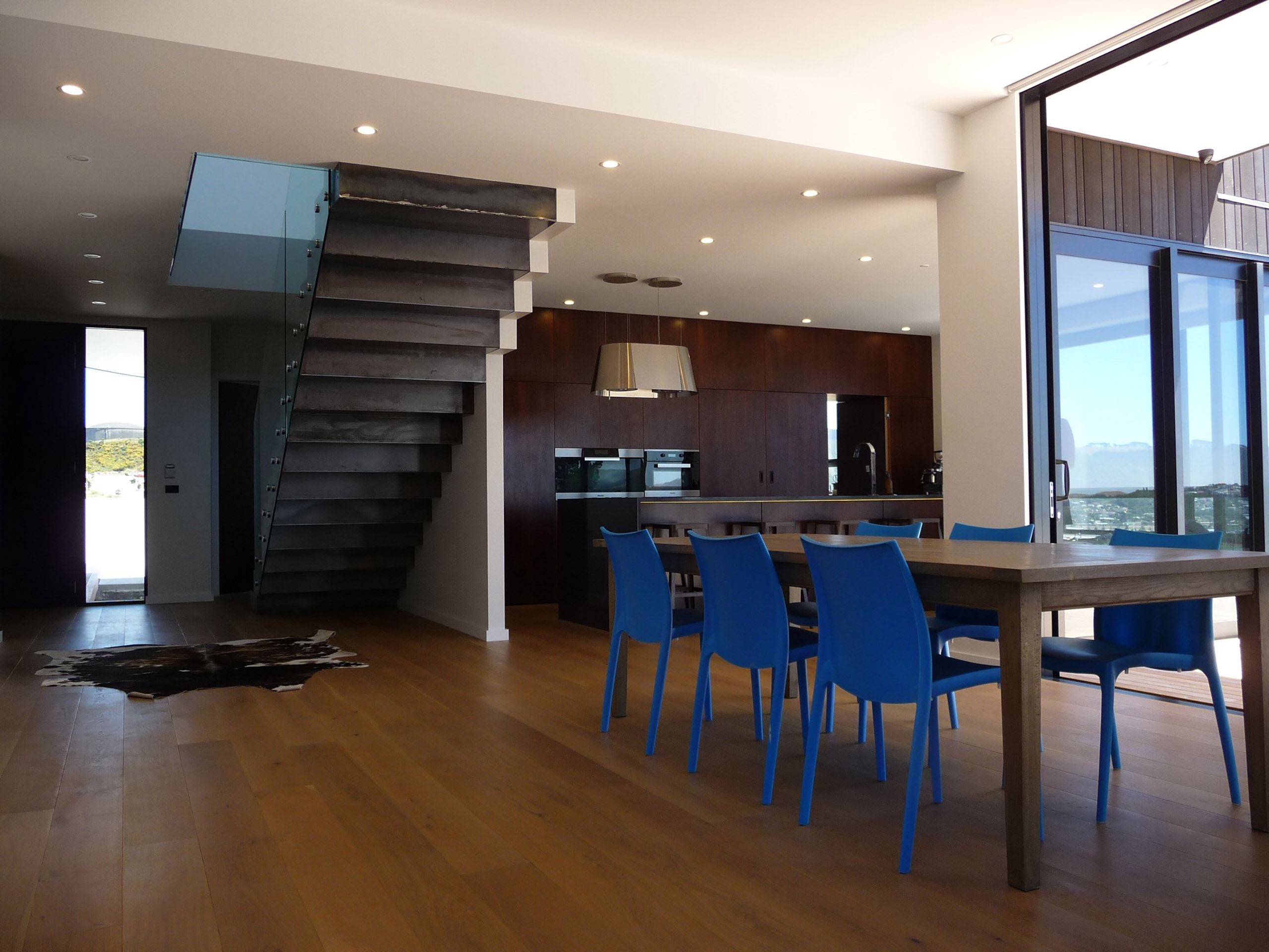With the views in Wellington comes the wind. The house needed to provide some relief from the often relentless North Wester. To this end the creation of a sheltered courtyard space became the balance to the pool. The house became the space that sat between these outdoor spaces providing a comfortable, contemporary family home.